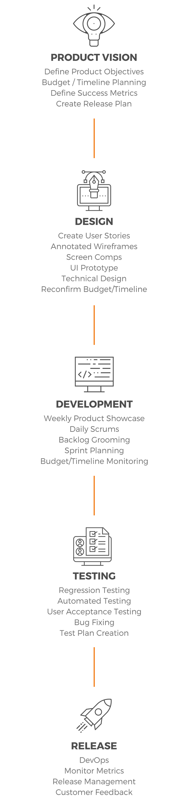 Our process has been battle tested and proven to generate extraordinary results. We have incorporated the latest best practices of scrum, continuous delivery, and testing automation to efficiently provide quality deliverables.